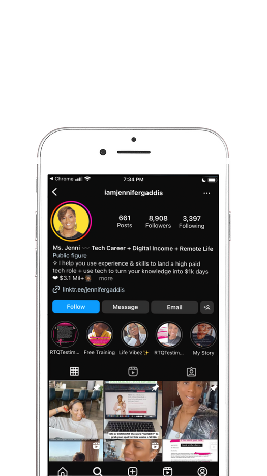 Jennifer Gaddis has created a digital platform and reach that inspires and educates thousands. She is the founder and lead instructor in her Ed-Tech company, Road To QA, and Moneytize You University.