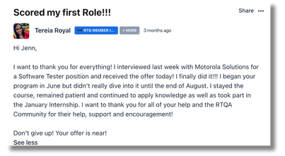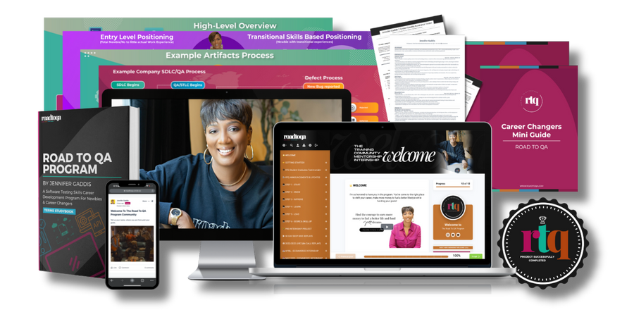 The Road To QA™ Program, aka (RTQ) was designed to be a cost-effective, Ed-Tech online self-paced software testing career-skills building development program with community support, group mentorship & and hands-on practical application.